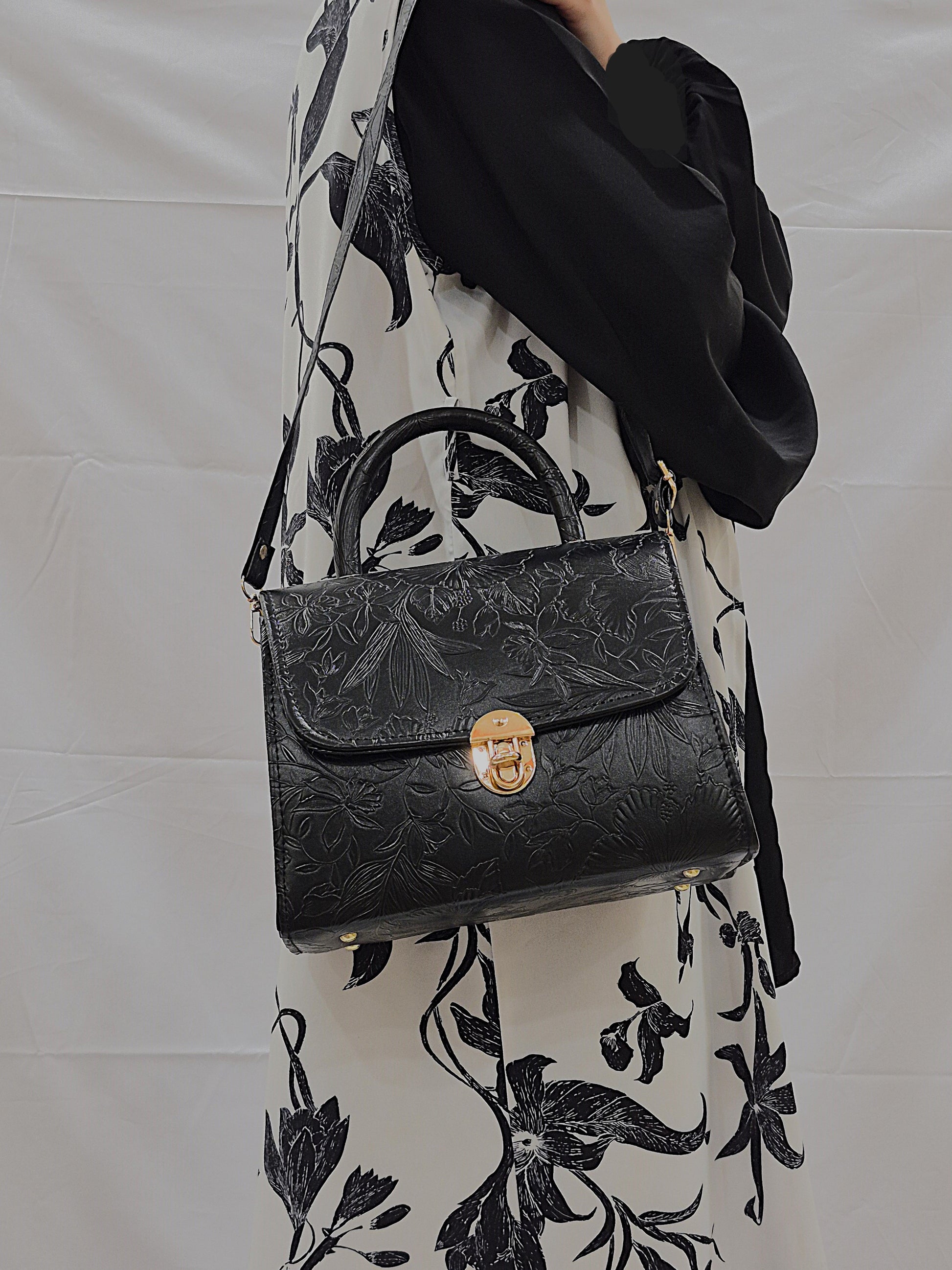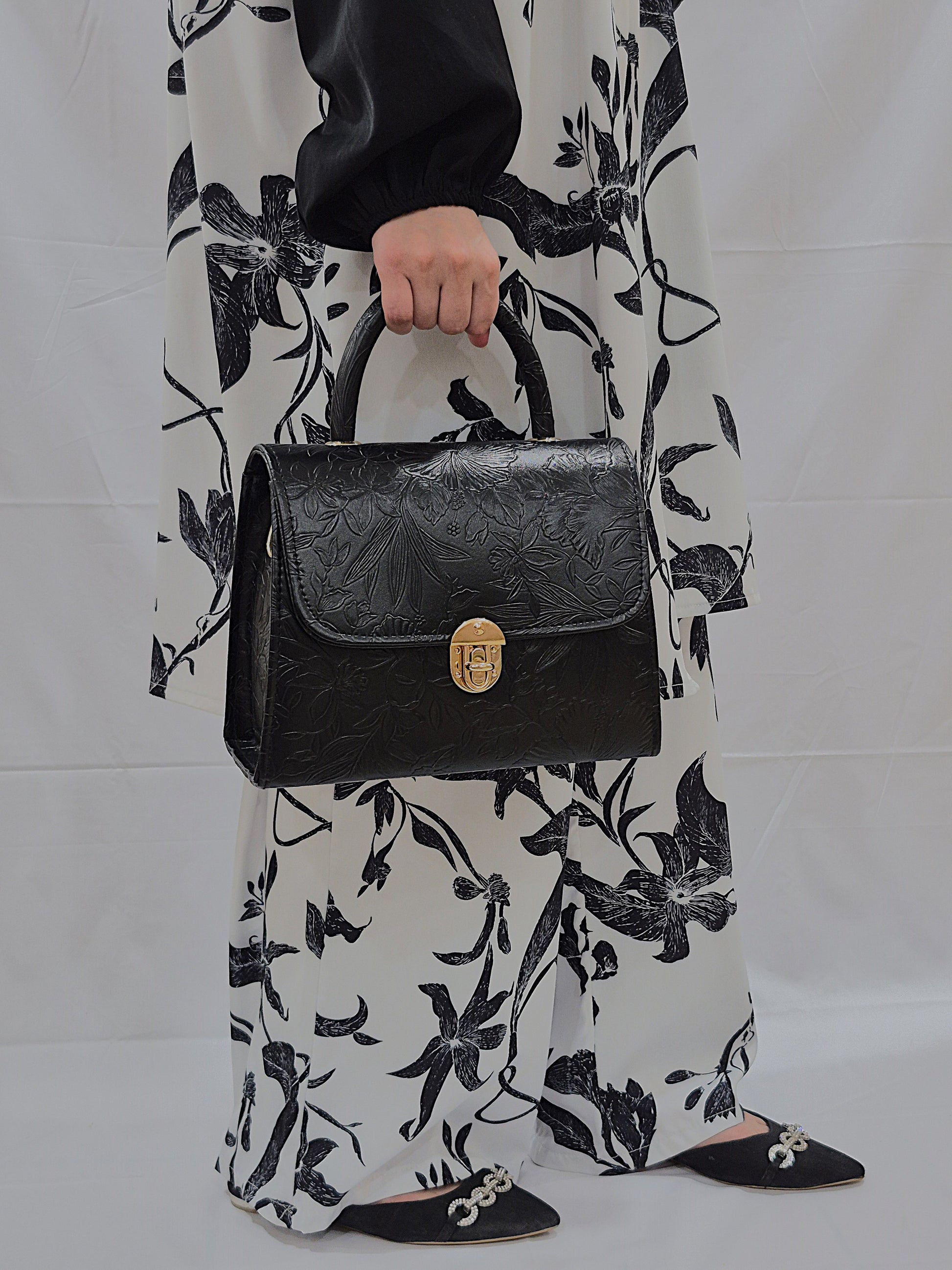Black Flora Satchel