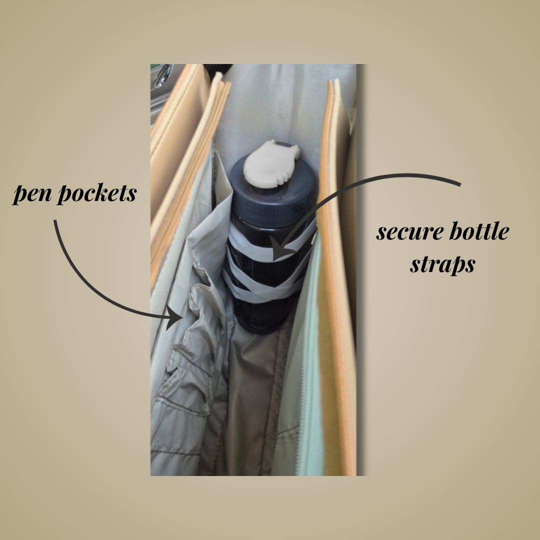 Stay effortlessly organized with our stylish tote bag, designed with working women and students in mind. It features a dedicated laptop pocket, secure slots for pens, snacks, and mobile, two extra compartments for your daily essentials, a key hook for quick access, and an elastic water bottle holder to keep hydration close. Chic, practical, and built for your busy day.